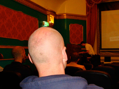 Bio Centrums biografföreståndare Alexander Olin hälsar välkommen genom att spela ett stycke.