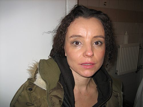 Lo Kauppi (skådespelare) färdigsminkad för tagning.